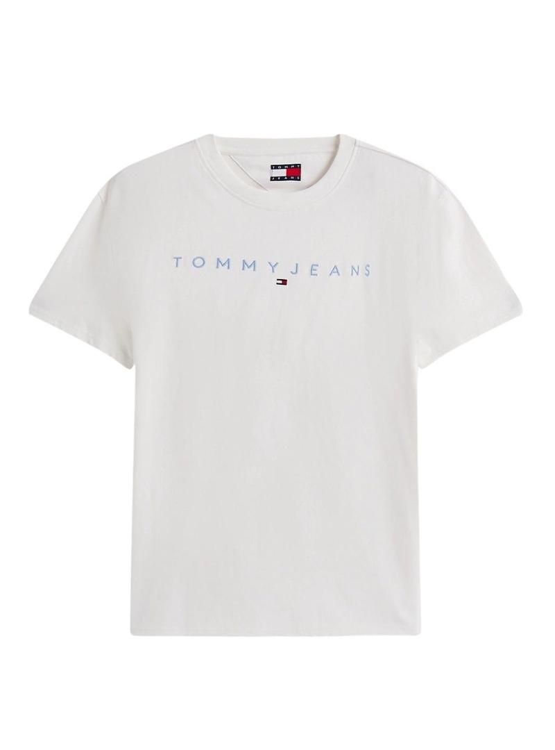 Camiseta Tommy Jeans Linear Logo branca para homem.