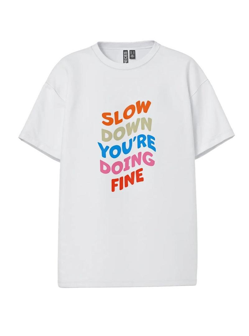 Camiseta Pieces Alfi Slow Down branca para mulher