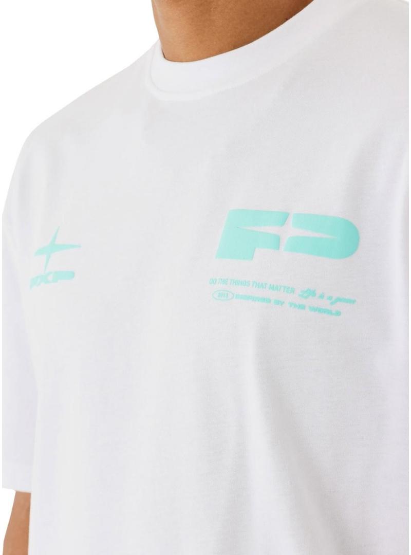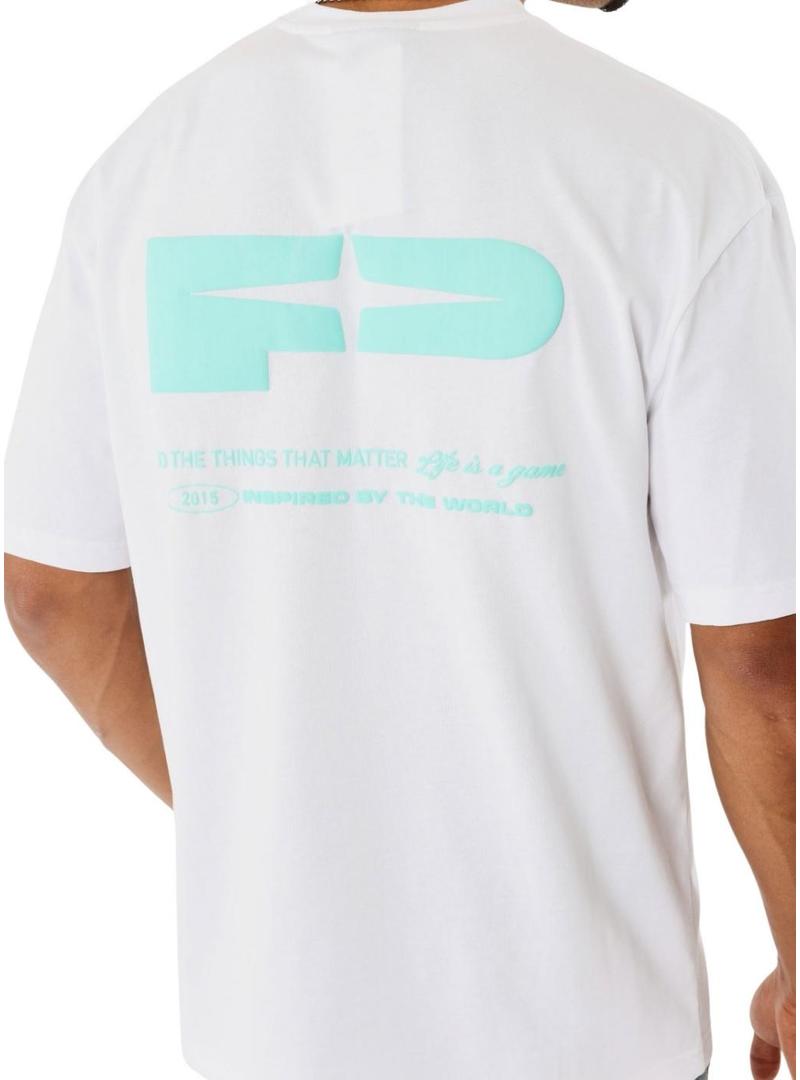 Camisa Project x Paris. Modelo Life is a game. Cor branca. Gola redonda. Ajuste folgado. Extremidades caneladas. Logos estampados no peito em turquesa. Ilustração XL estampada nas costas. Manga curta.