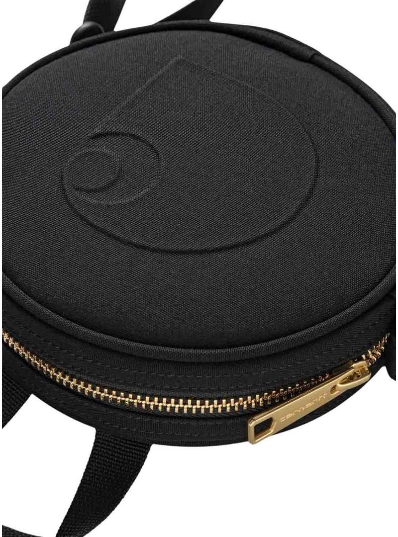 Bolsa Carhartt. Modelo Clarton. Cor preta. Formato circular. Fecho com zíper. Alça ajustável e removível. Logo em relevo. Dimensões: 15 x 15 x 4 cm. Capacidade de 0,9 litros.