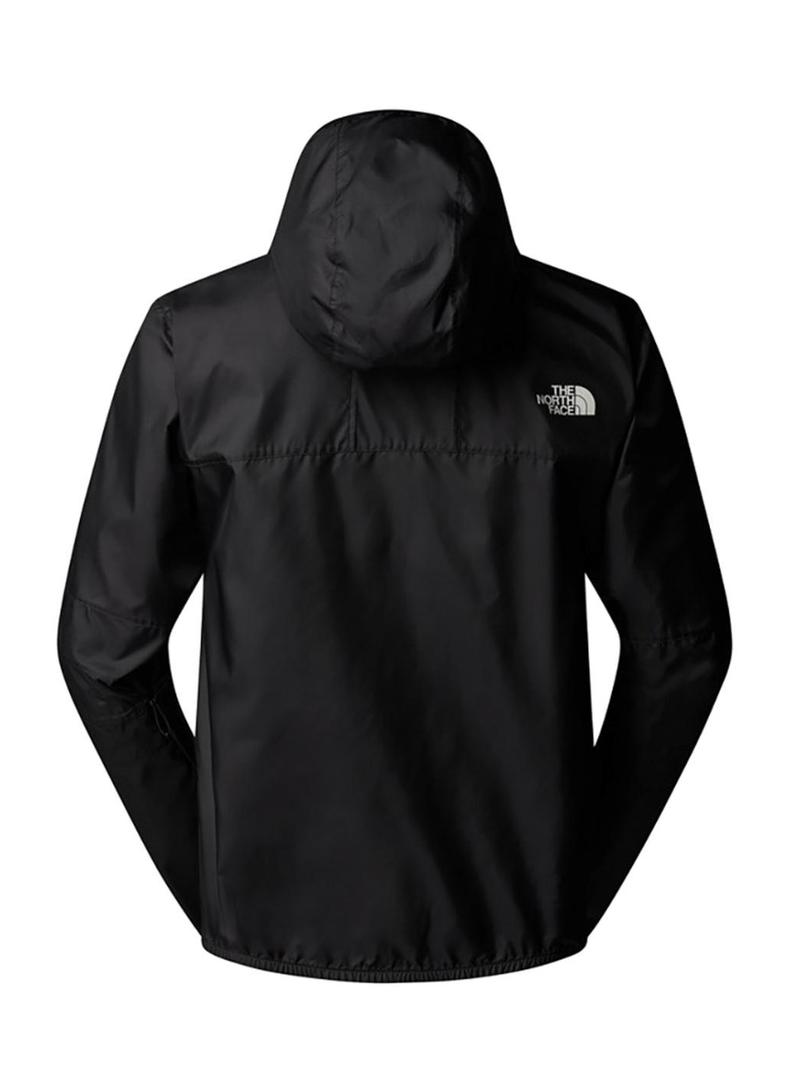 Jaqueta The North Face. Cor preta. Tecido leve. Com capuz. Punhos e barra elásticos. Bolsos laterais com zíper. Logotipo no peito, na manga e nas costas. Etiqueta da jaqueta Mountain costurada no interior do bolso frontal. Abotoamento de 7 botões de pressão na parte central.