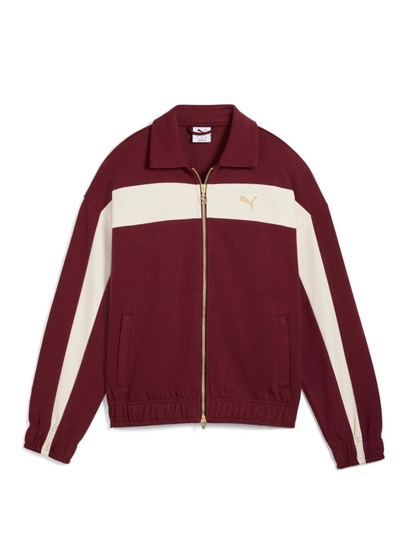 Jaqueta esportiva Puma T7 Relaxed grená para mulher.