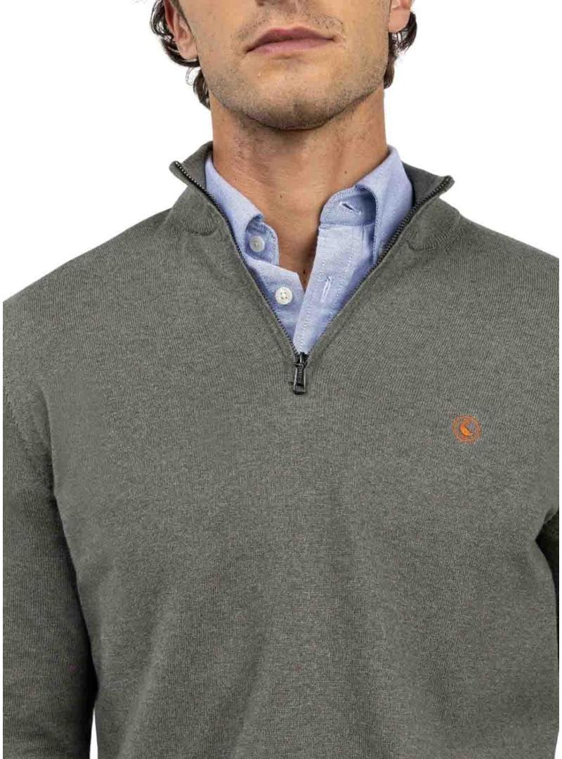 Camisola El Ganso. Modelo Gola alta. Cor verde. Gola alta com zíper. Logo bordado no peito. Extremidades caneladas. Ajuste regular. Tecido com uma percentagem de caxemira para obter qualidade com maior suavidade.
