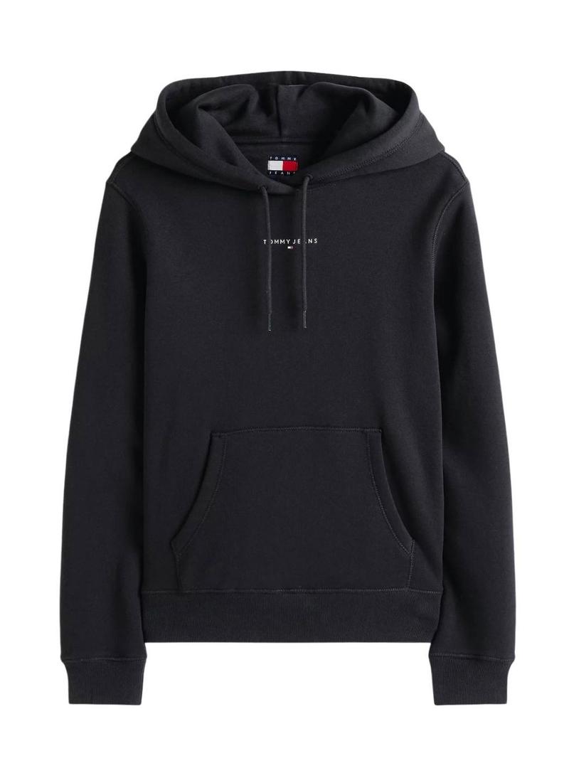 Moletom Tommy Jeans. Modelo Linear. Cor preta. Capuz com cordão ajustável. Extremidades caneladas. Bolso canguru. Marca bordada no peito com estilo minimalista. Ajuste folgado.
