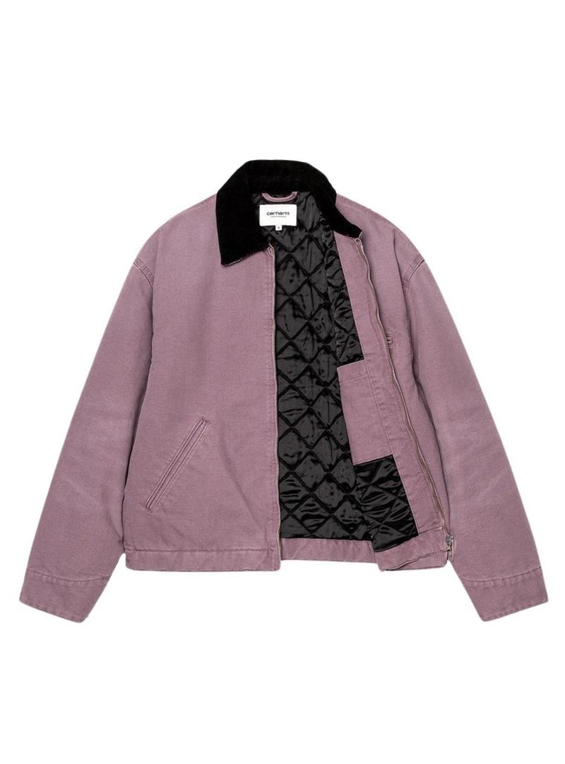 Casaco Carhartt. Modelo Detroit. Cor-de-rosa. Fecho com zíper. Gola em contraste preto. Etiqueta com logo no peito. Bolsos laterais. Bolso com zíper no peito. Corte folgado. Tecido acolchoado para o frio.