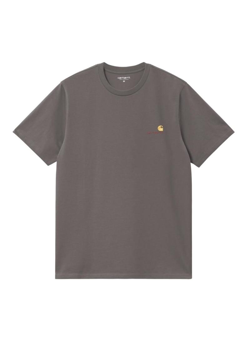 Camiseta Carhartt. Modelo Script. Cor cinza. Gola redonda. Manga curta. Logotipo bordado no peito. Ajuste folgado.