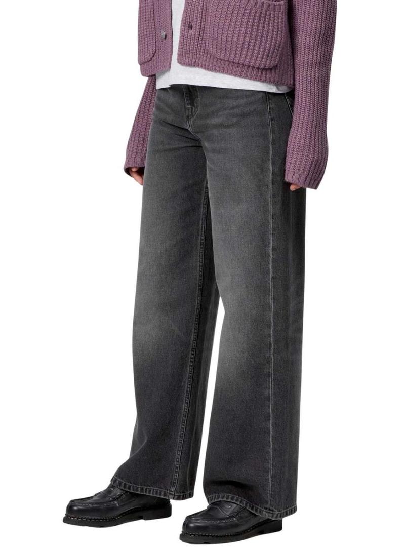 Calça jeans Carhartt. Modelo Jane. Cor preta. Efeito lavado. Fecho de botão e zíper. Cinco bolsos. Cintura alta. Patch da marca no bolso traseiro. Corte reto. Ajuste levemente folgado na perna.