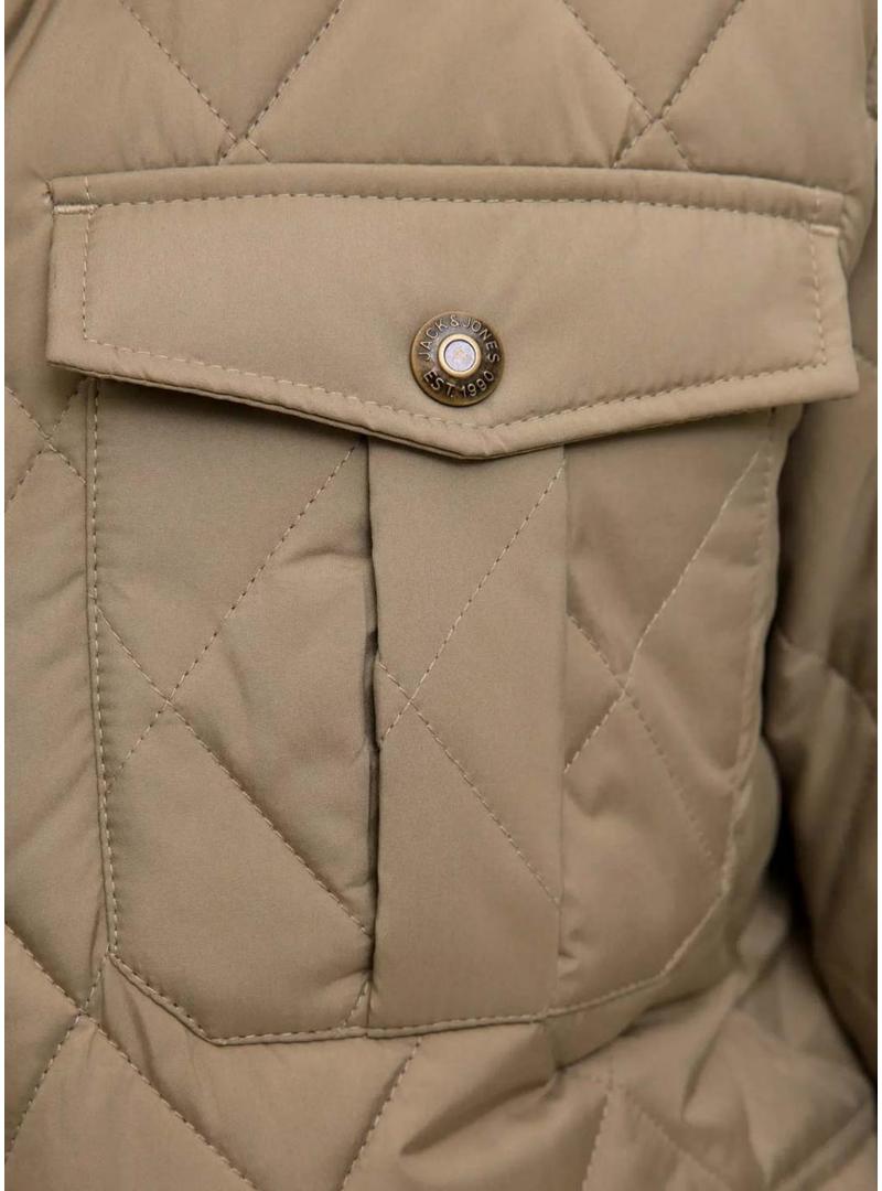 Jaqueta Jack and Jones. Modelo Blubryan. Cor bege. Fechamento com botões de pressão e zíper. Tecido acolchoado em diamante. Gola contrastante em veludo cotelê. Bolsos com lapela. Ajuste regular.