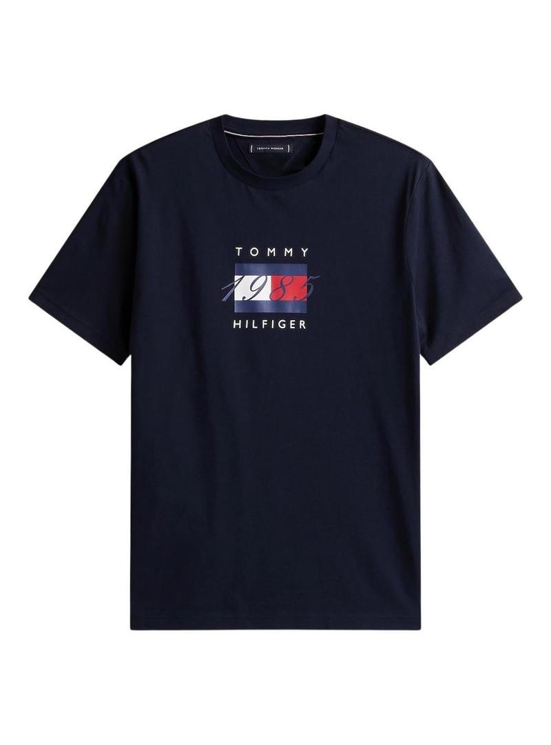 Camiseta Tommy Hilfiger. Modelo Linear. Cor azul marinho. Gola redonda. Manga curta. Logo 1985 estampado na frente. Ajuste regular.