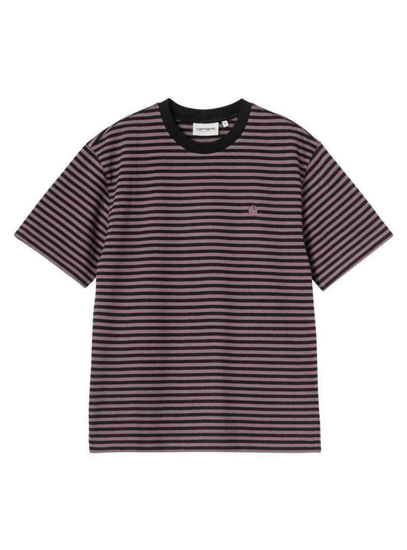 Camiseta Carhartt Verner listras rosa e preto para mulher.