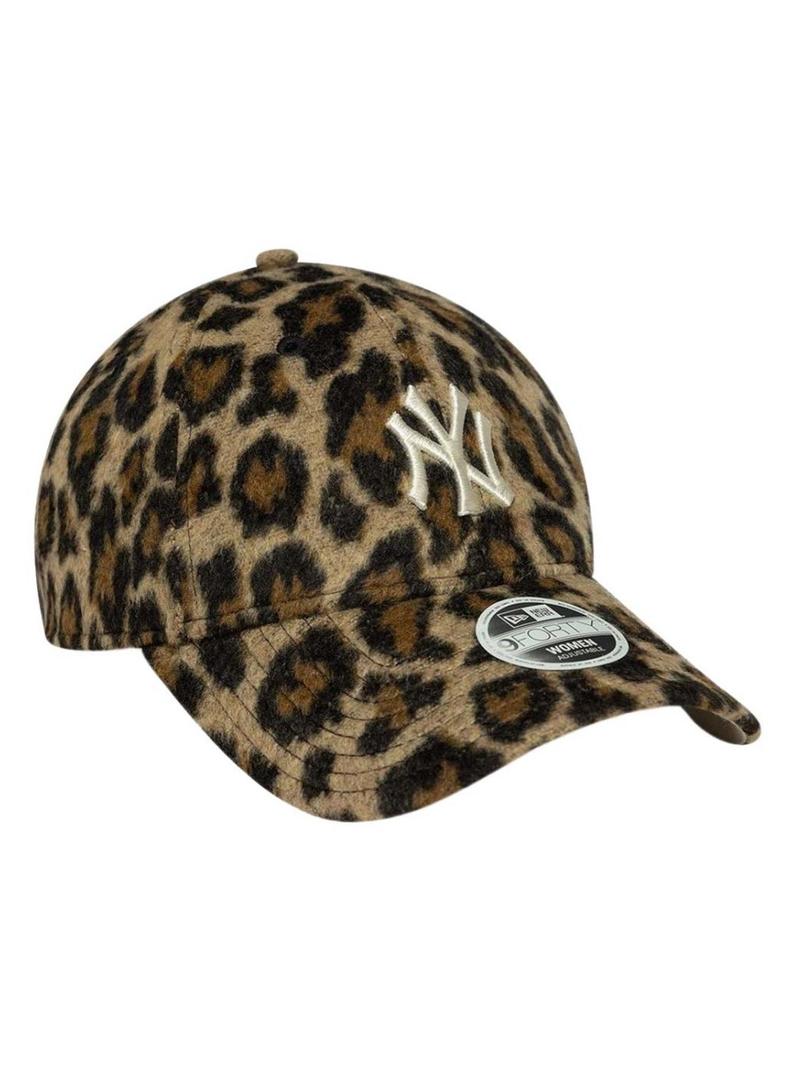 Boné New Era. Modelo 9Forty. New York Yankees. Estampa animal print de leopardo. Tons marrons. Logo da equipe bordado na parte da frente. Logo da MLB sobre o arco traseiro. Logo New Era bordado no lado esquerdo. Coroa estruturada. Fecho ajustável. Viseira curva. Tecido aconchegante de pelo.