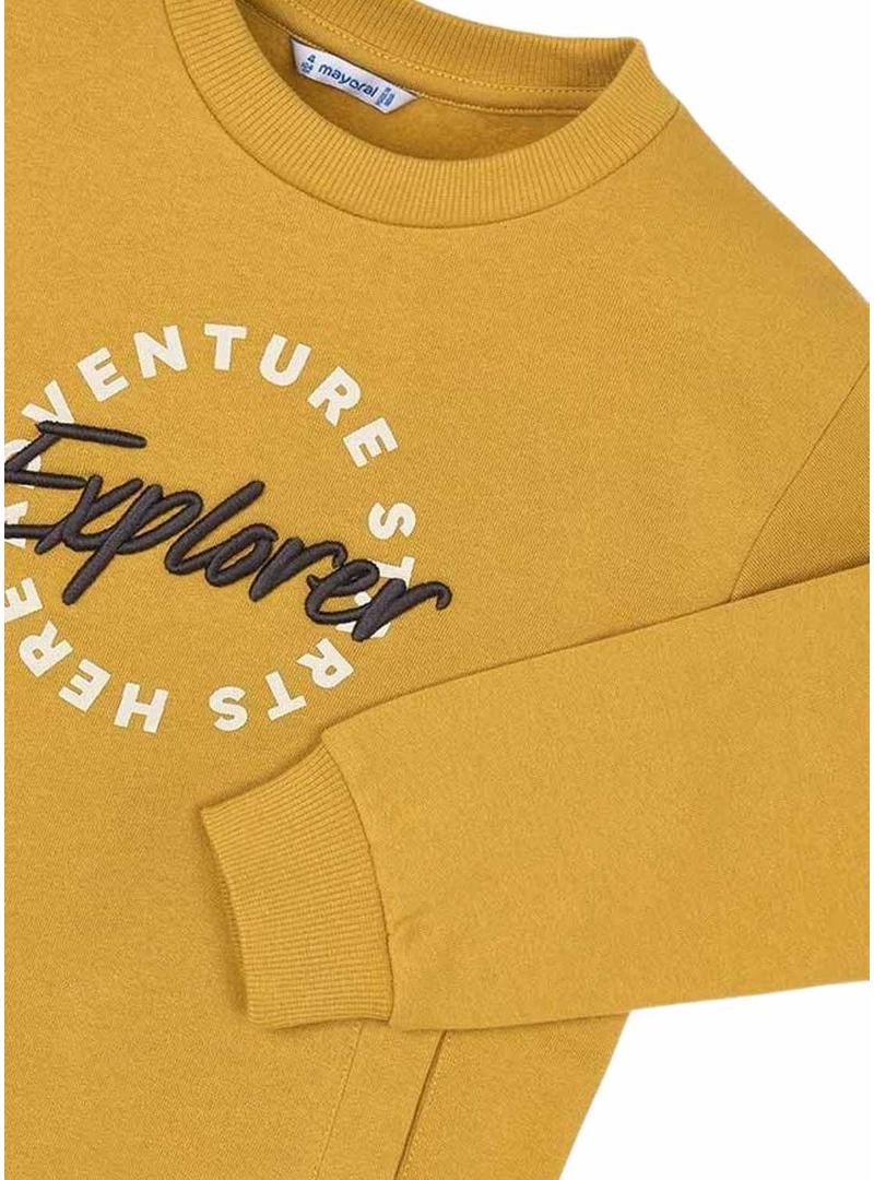 Moletom Mayoral. Gola redonda. Manga comprida. Explorer bordado no peito. Ombros caídos. Bolsos laterais.