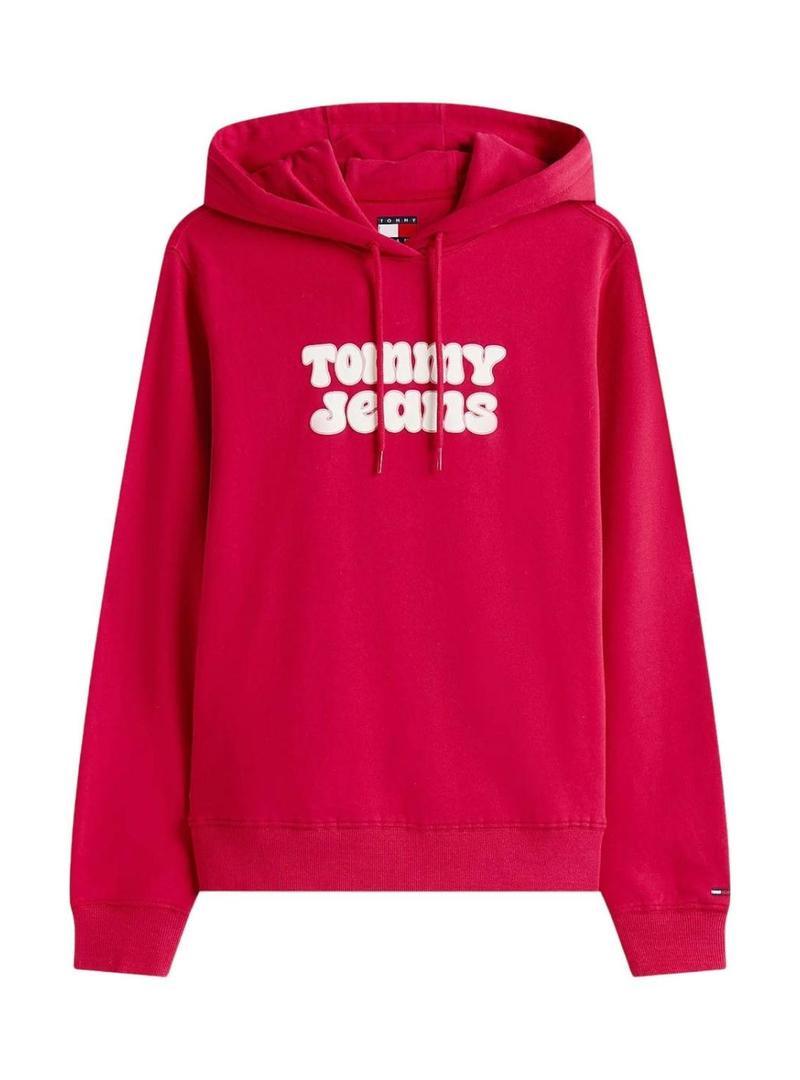 Moletom Tommy Jeans. Modelo Logo. Cor vermelha. Capuz com cordão ajustável. Extremidades caneladas. Ajuste folgado. Logo bordado na manga. Marca estampada no peito. Detalhes em branco.
