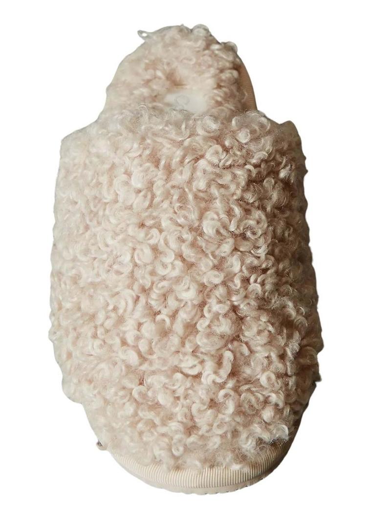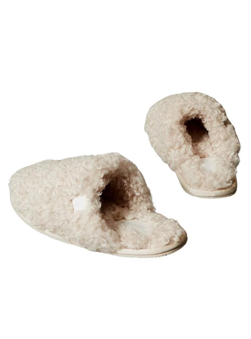 Chinelos de casa Calvin Klein de pele de carneiro bege para mulher.