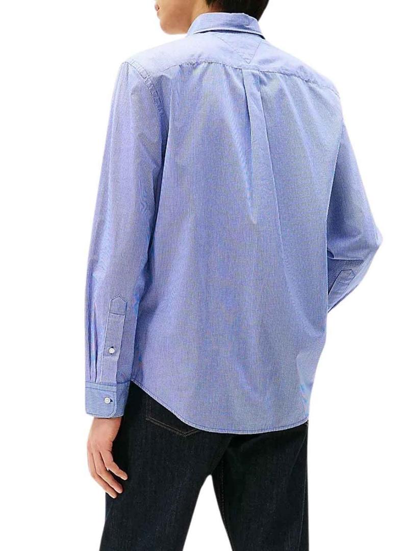 Camisa Tommy Hilfiger de algodão estampada xadrez azul para homem