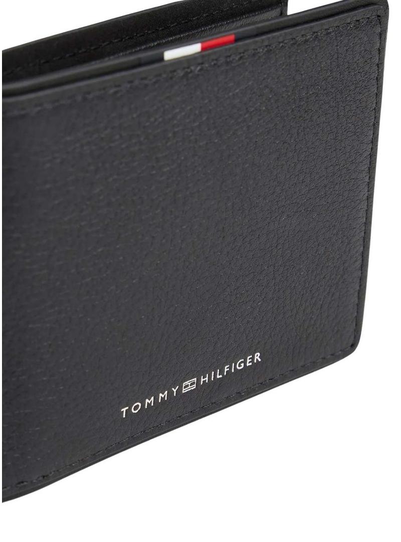 Carteira de couro dobrável Tommy Hilfiger Corporate preta para homem.