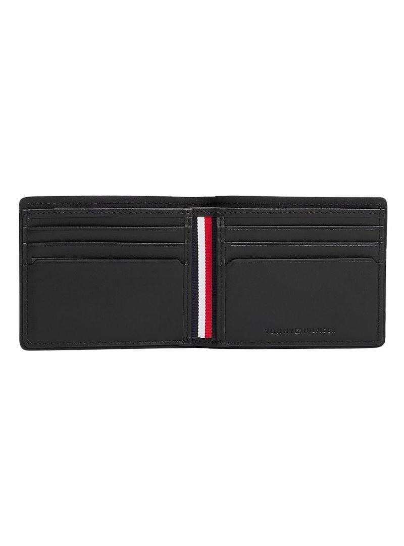 Carteira de couro Tommy Hilfiger dobrável Corporate com porta-moedas preto para homem.