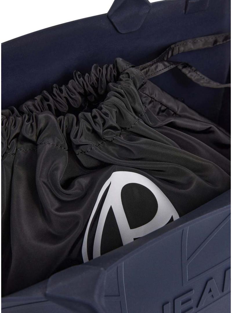 Bolsa Pepe Jeans. Tecido de borracha. Cor azul. Alças curtas. Alça de ombro de lona ajustável e removível. Logo estampado na alça. Bolsa interior com fecho de cordão. Logo em relevo com bandeira Union Jack na frente e atrás.
