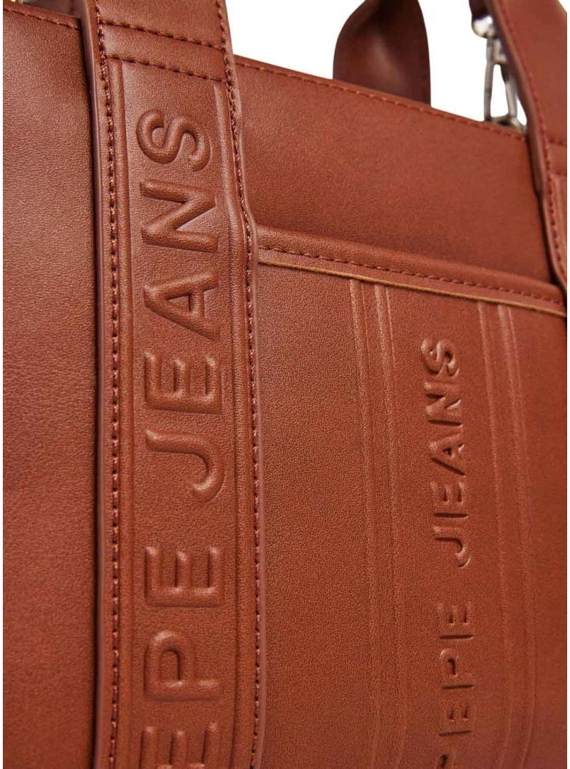 Bolsa Pepe Jeans. Formato retangular. Cor marrom. Feito de couro sintético. Fecho de correr na parte superior. Duas alças curtas. Alça de ombro ajustável e destacável. Logotipo em relevo na parte da frente e de trás. Bolso na parte da frente. Bolso interior com fecho de correr. Medidas: 10,5 x 26 x 18 cm.