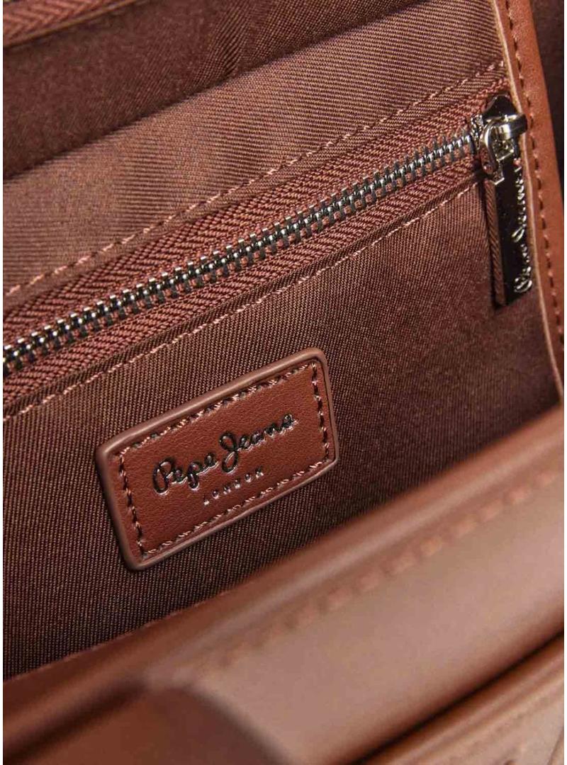 Bolsa Pepe Jeans Zadie marrom retangular para mulher.
