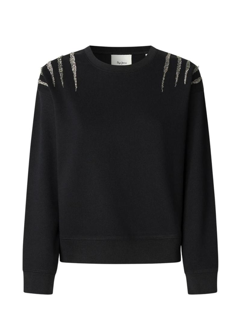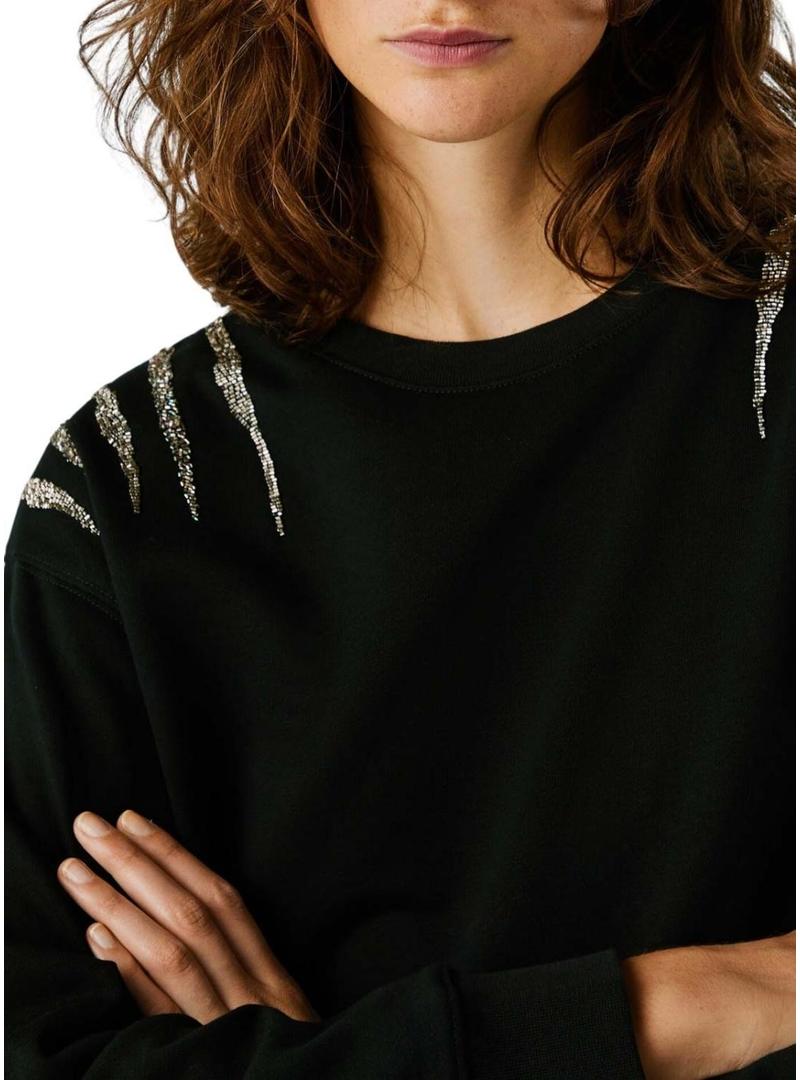Moletom Pepe Jeans Barny com pedrarias preto para mulher.