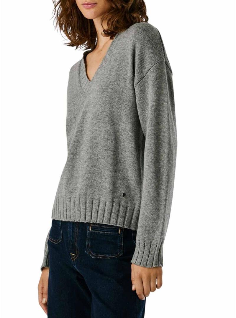 Camisola Pepe Jeans Cherice com decote em V cinza para mulher.