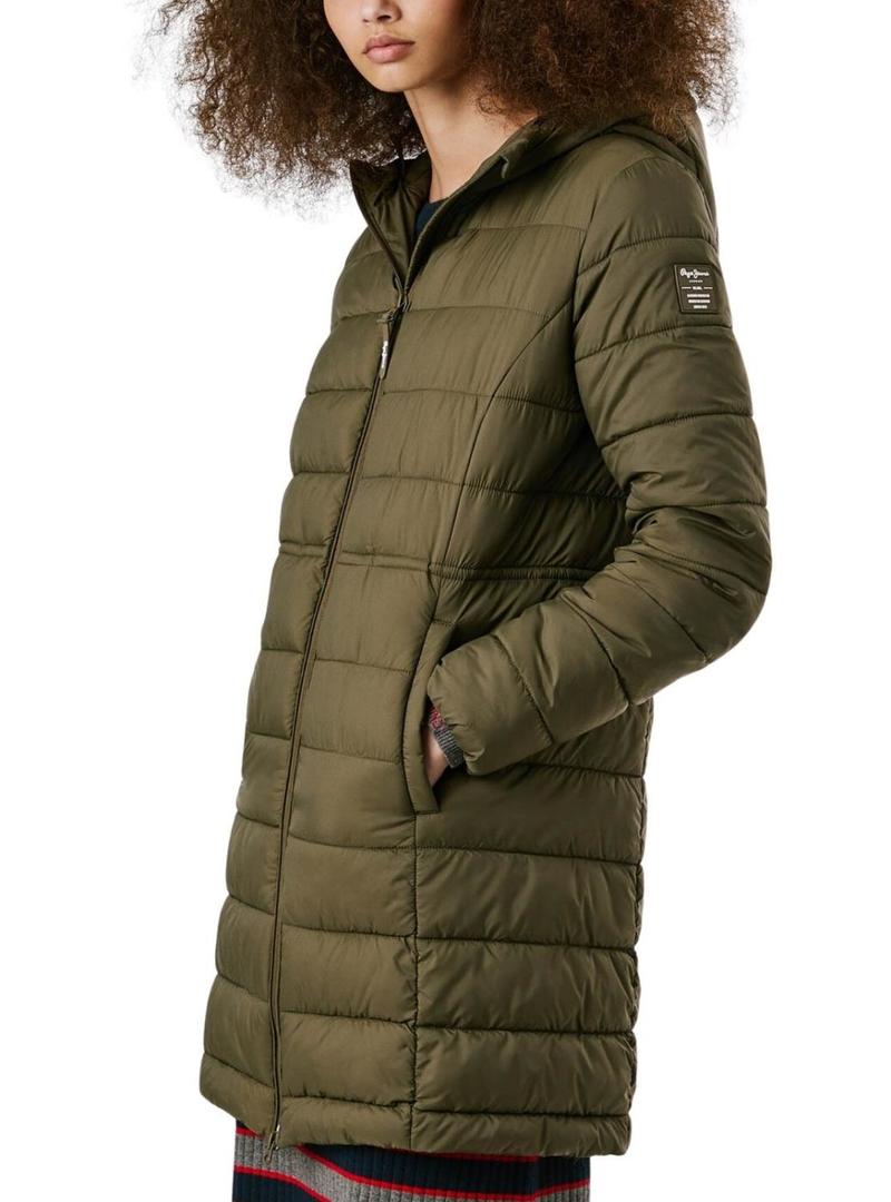 Casaco acolchoado Pepe Jeans Sally comprido verde para mulher.