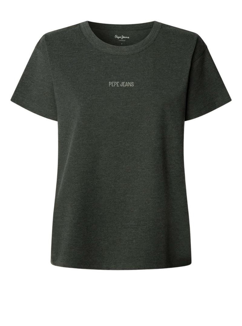 Camiseta Pepe Jeans Bemma logo strass cinza para mulher.