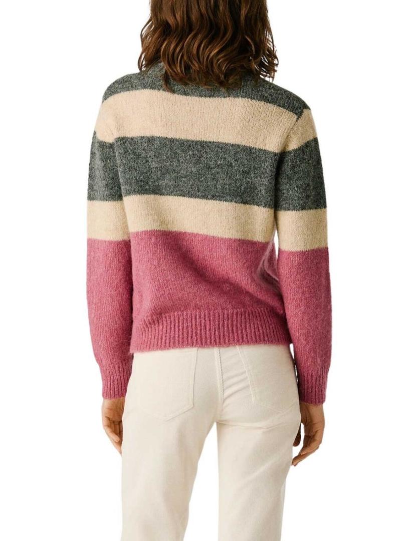 Camisola Pepe Jeans Clarisse em malha canelada estampada de riscas para mulher.