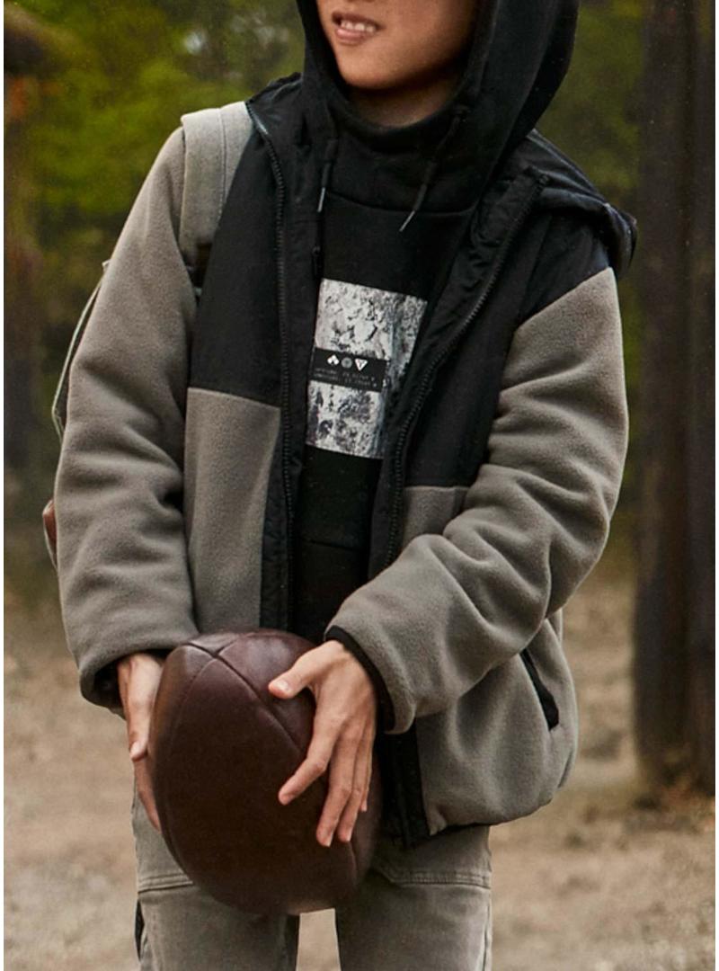Casaco Mayoral. Reversível. Gola com capuz. Fecho central com zíper oculto. Bolsos na parte da frente. Enchimento 100% poliéster.