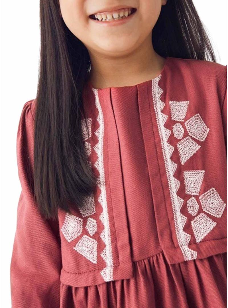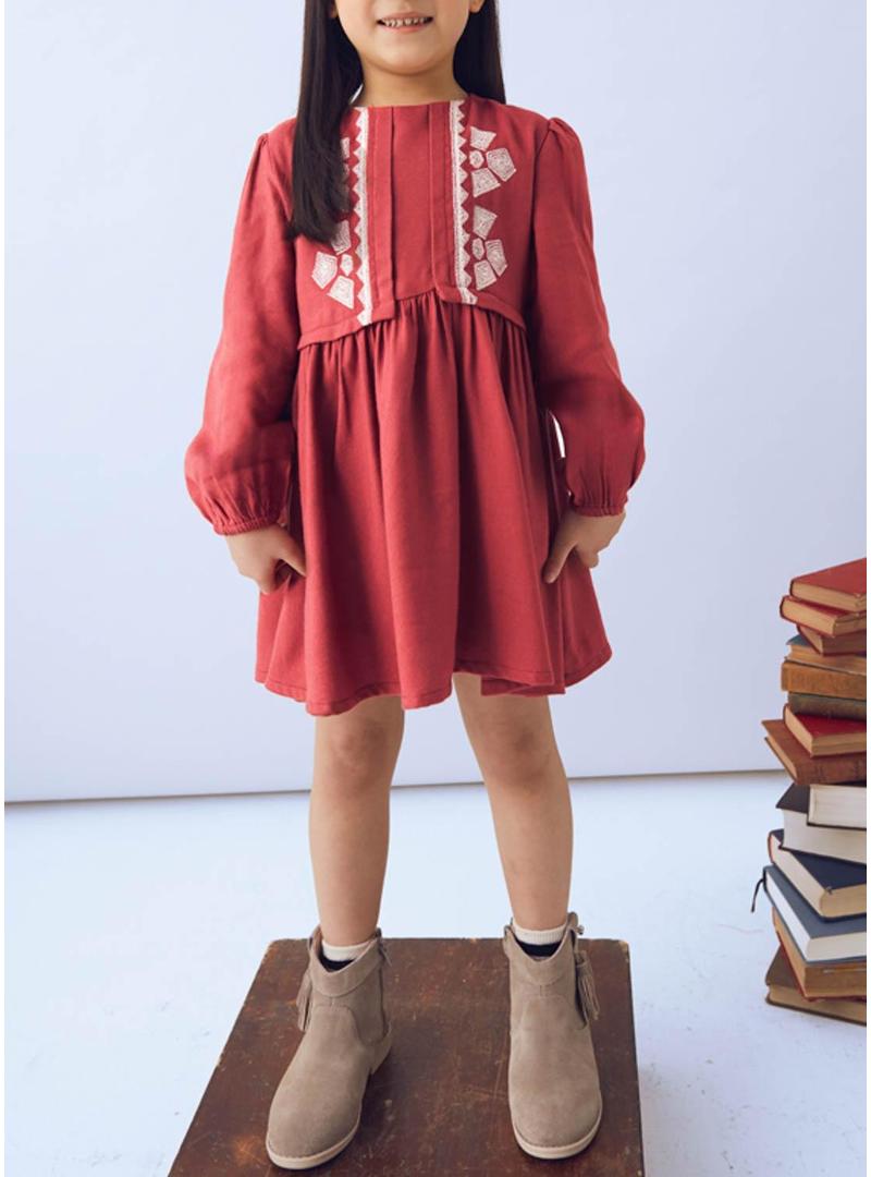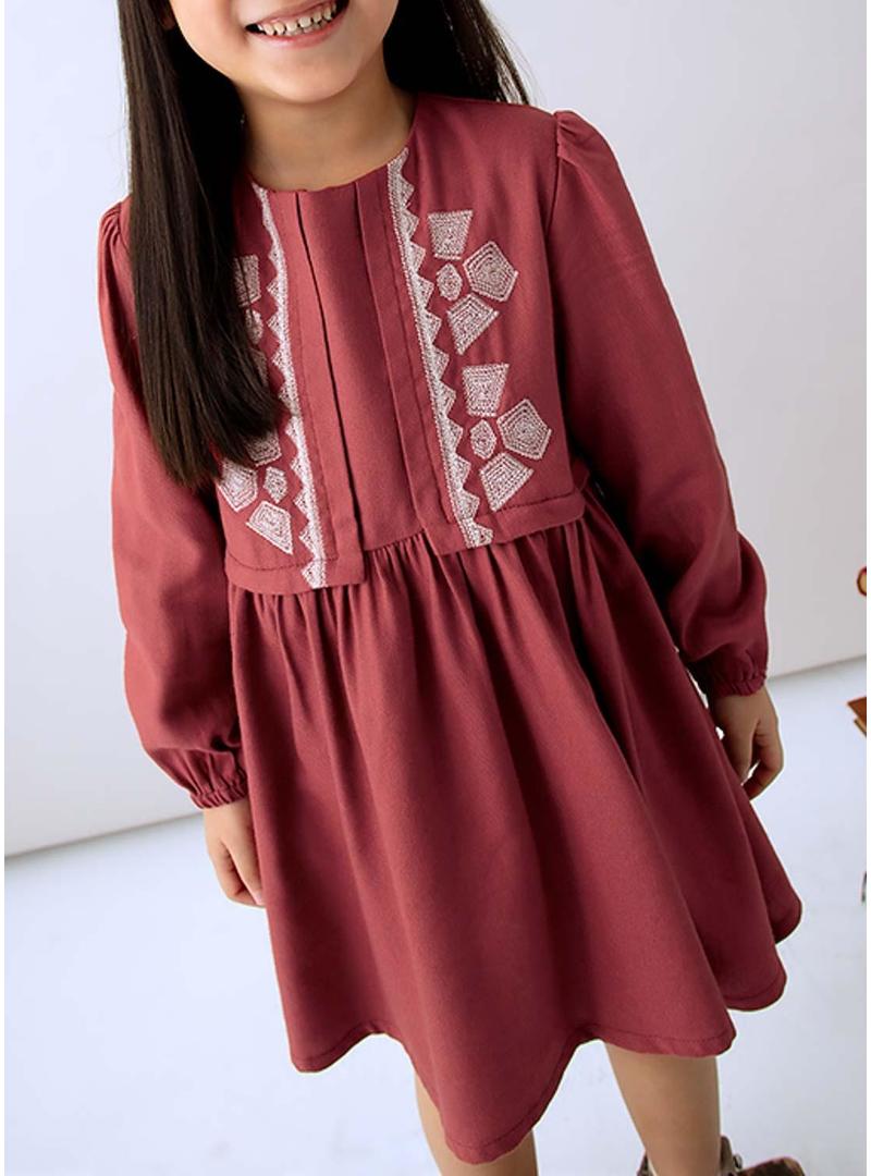 Vestido Mayoral. Manga comprida. Decote redondo. Fecho com zíper invisível nas costas. Design fabricado em diferentes tecidos. Forro interno. Detalhe de bordados.