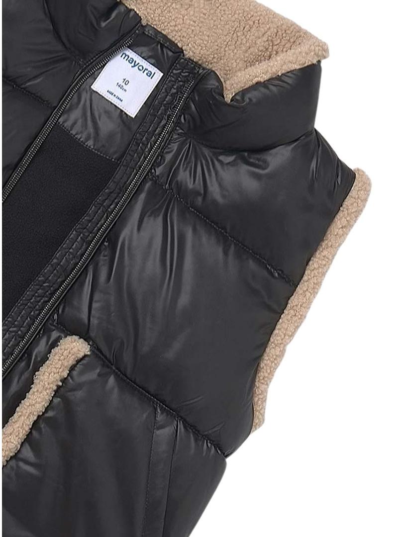 Colete Mayoral com contrastes em pele de carneiro preta para menina.