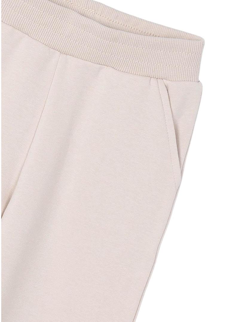 Fato de treino Mayoral. Três peças. Suéter de manga comprida. Gola com capuz. Fecho frontal com zíper. Cordão ajustável na barra. Calças com cintura elástica. Calça bege com punhos elásticos e bolsos laterais.