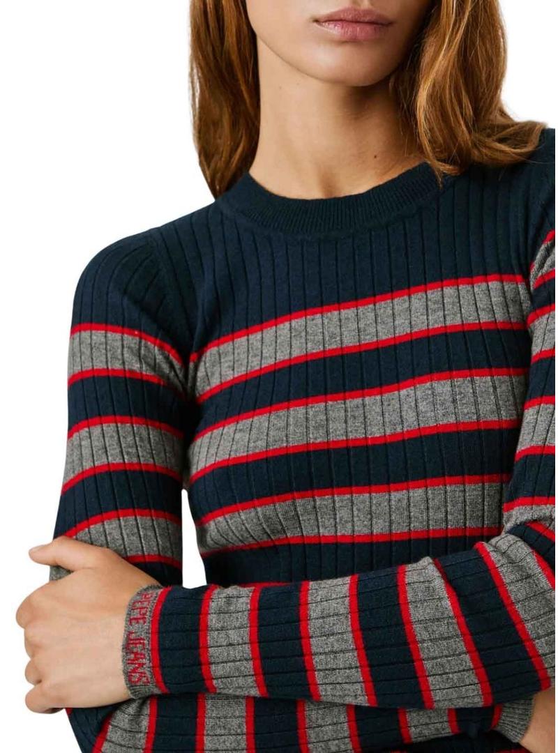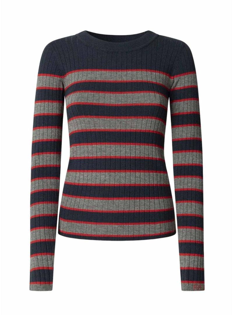 Camisola Pepe Jeans Clarisse em malha canelada estampada de riscas para mulher.