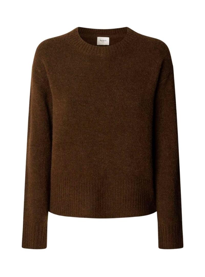 Camisola Pepe Jeans Cecil de gola redonda marrom para mulher.