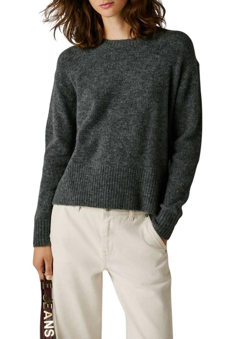 Camisola Pepe Jeans. Cor cinza. Efeito marmorizado. Gola redonda. Manga comprida. Ombros caídos. Feito numa mistura leve de lã. Costura traseira com abertura na parte inferior. Acabamentos canelados. A modelo veste o tamanho S.