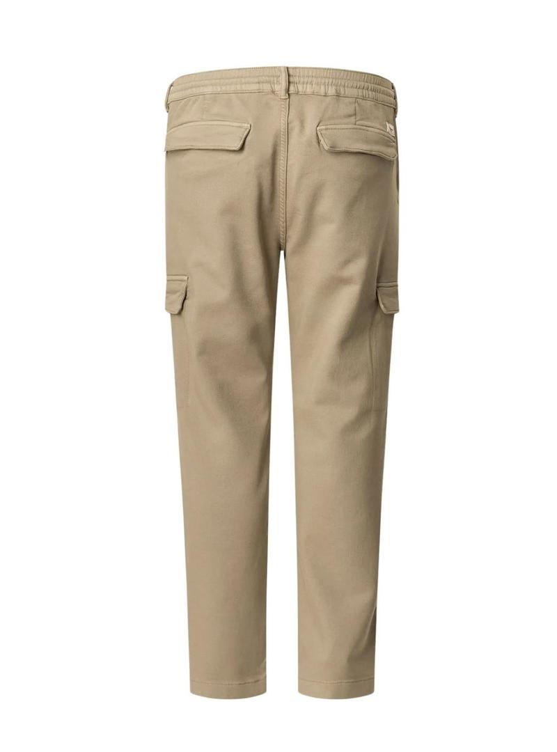 Calça Pepe Jeans. Formato cargo. Cor bege. Tecido gymdigo. Formato slim. Cintura de elástico ajustável com cordão. Bolsos laterais. Bolsos cargo. Bolsos traseiros com aba. Etiqueta com logo acima do bolso traseiro.