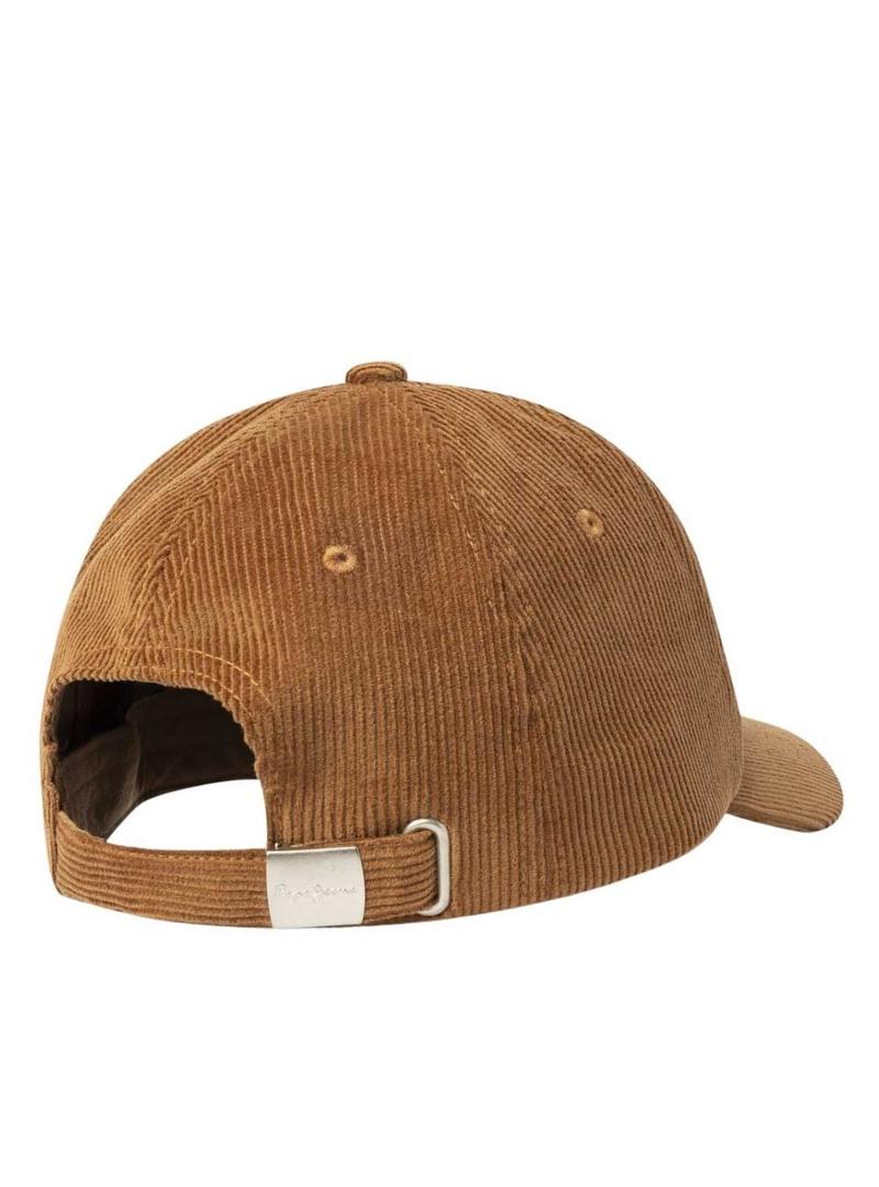 Boné Pepe Jeans. Cor camelo. Tecido de veludo cotelê. Viseira curva com costuras decorativas. Ilhós na parte superior. Correia ajustável na parte traseira. Fivela de metal com logo. Logo bordado combinando na parte frontal. Diâmetro: 56 cm. Medidas: 30 x 10 x 20 cm.