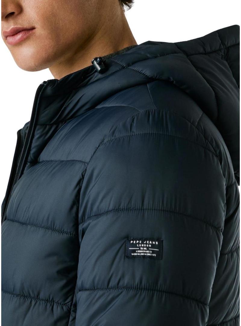 Jaqueta acolchoada com capuz azul marinho da Pepe Jeans para homem.