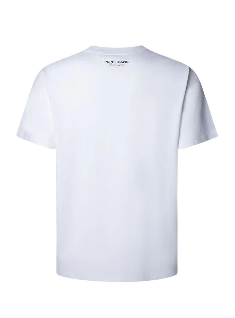 Camiseta Pepe Jeans. Cor branca. Manga curta. Gola redonda canelada. Formato relaxado. Logotipo estampado no peito. Acabamento com costura dupla nas mangas e na barra. Etiqueta da marca costurada na lateral. O modelo usa o tamanho M.