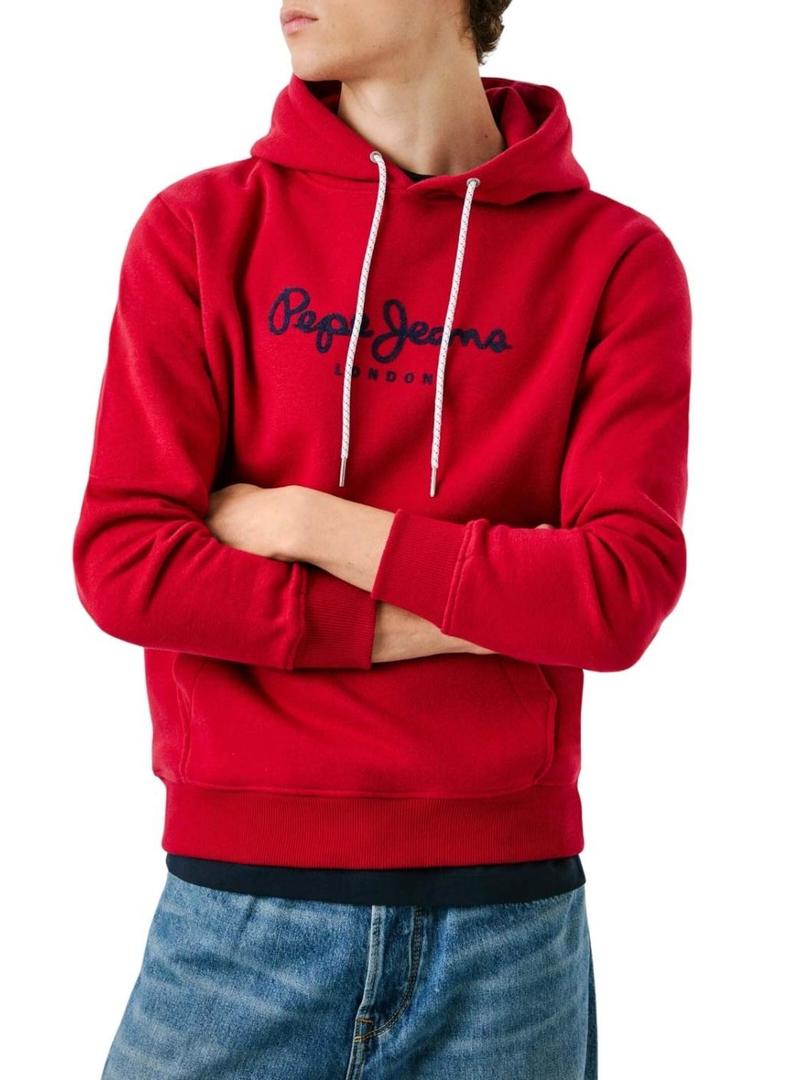 Moletom Pepe Jeans Macbeth com capuz vermelho e logo para homem.