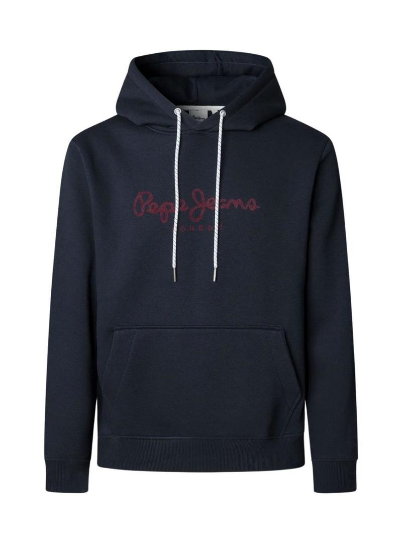 Moletom Pepe Jeans Macbeth com capuz com logotipo marinho para homem.