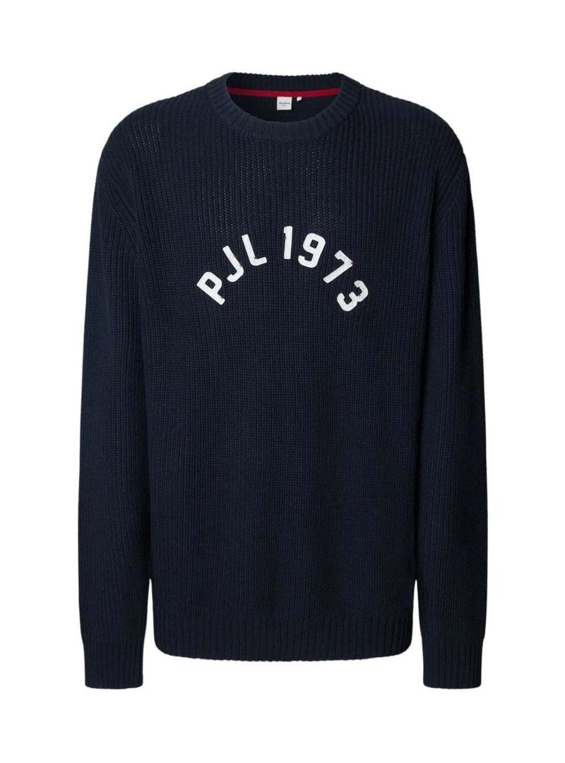 Camisola Pepe Jeans. Cor azul marinho. Manga comprida. Gola redonda. Corte regular. Logo PJL 1973 de feltro no peito. Acabamentos canelados. Etiqueta da marca costurada na lateral. O modelo veste o tamanho M.