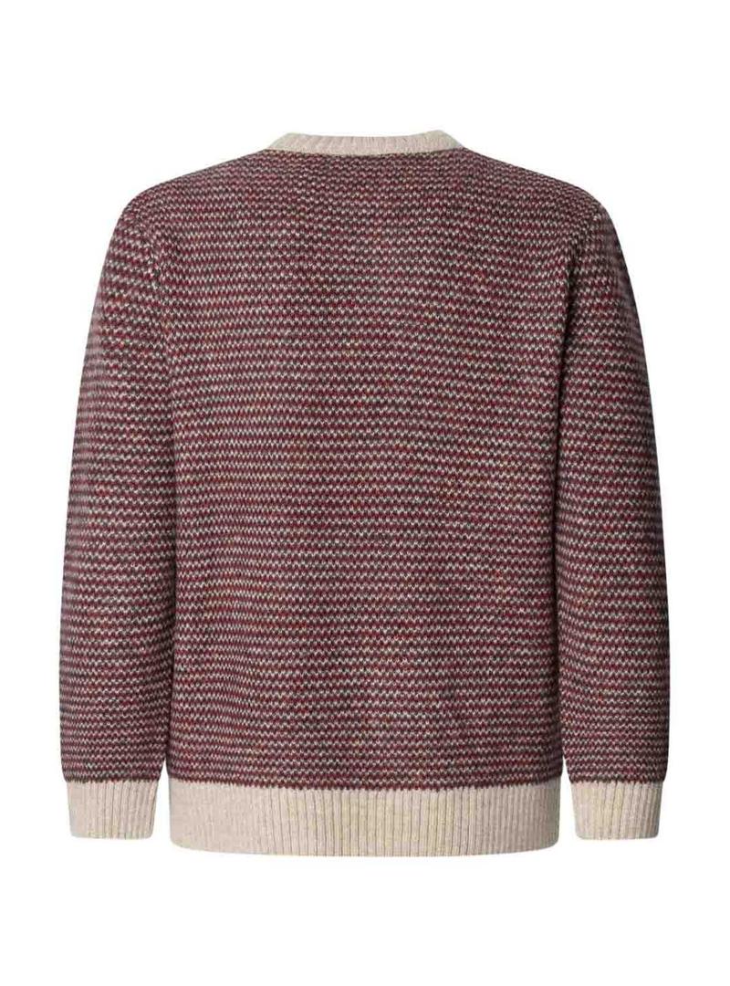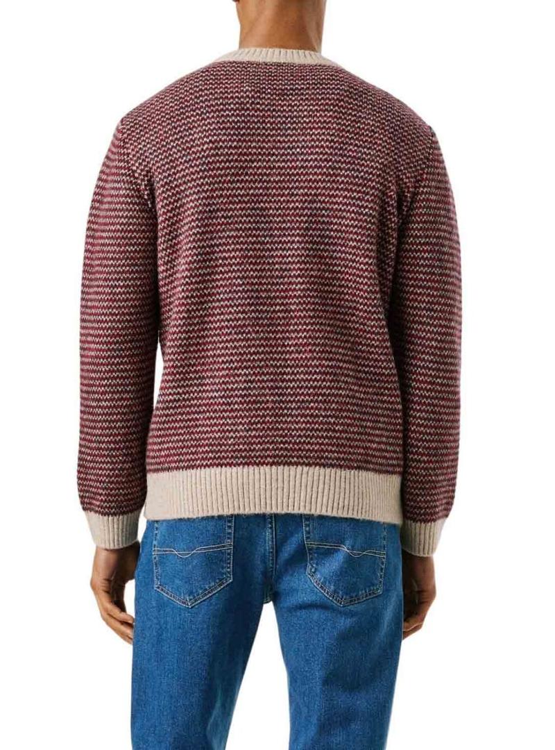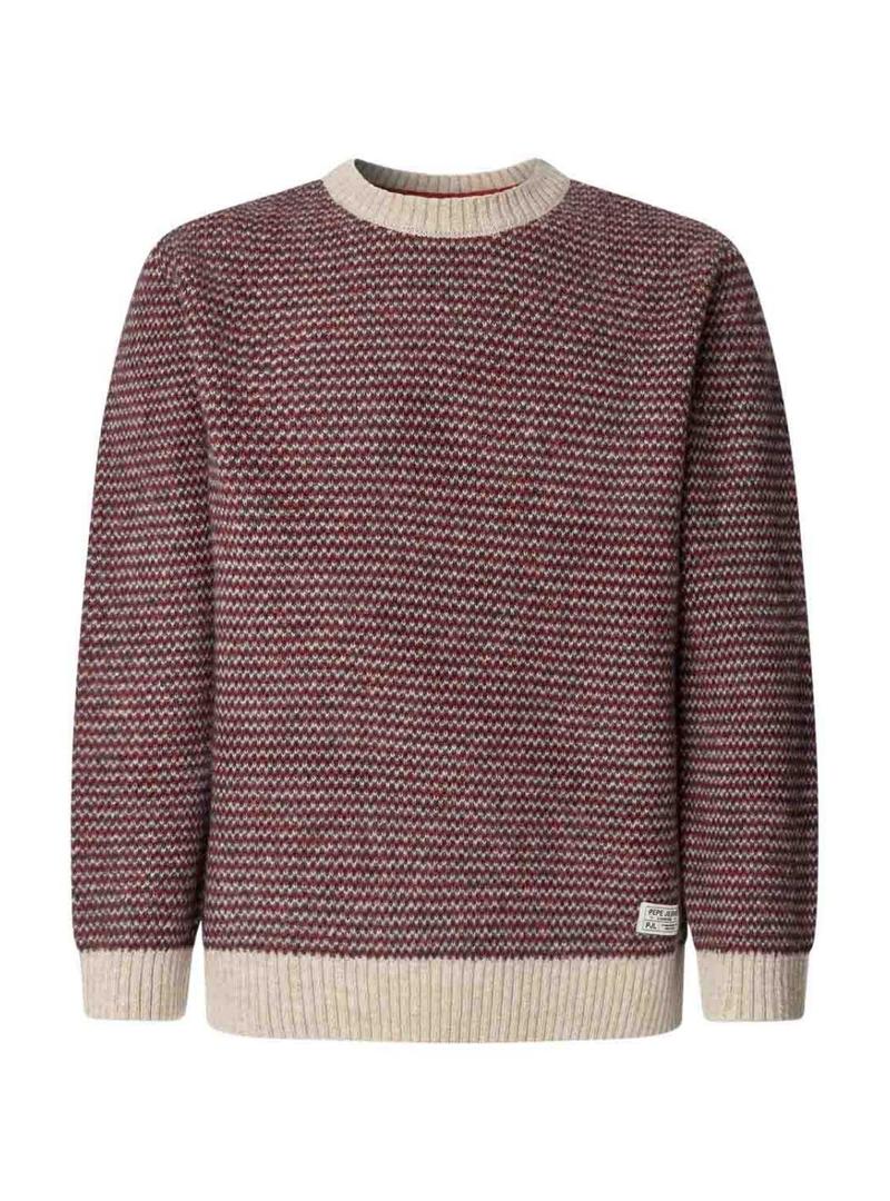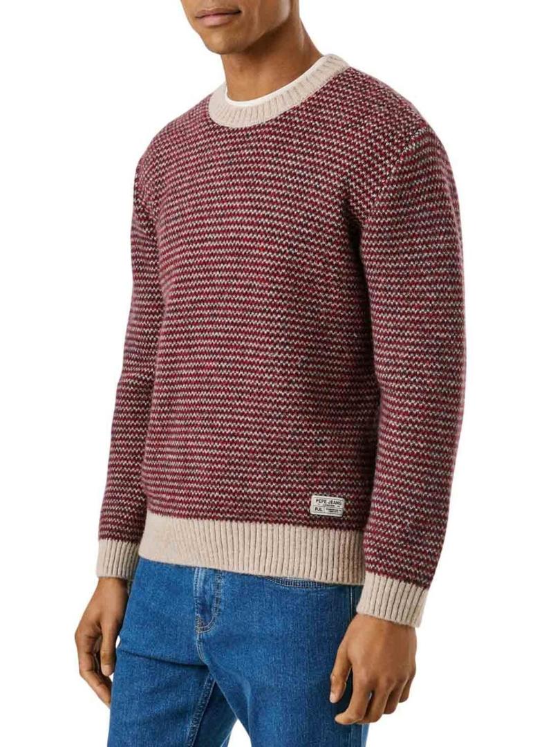 Camisola Pepe Jeans. Malha de mistura de lã e alpaca. Corte regular. Gola redonda. Manga comprida. Estrutura jacquard com riscas horizontais. Acabamentos canelados. Etiqueta com logotipo da Pepe Jeans na parte inferior. O modelo veste o tamanho M.