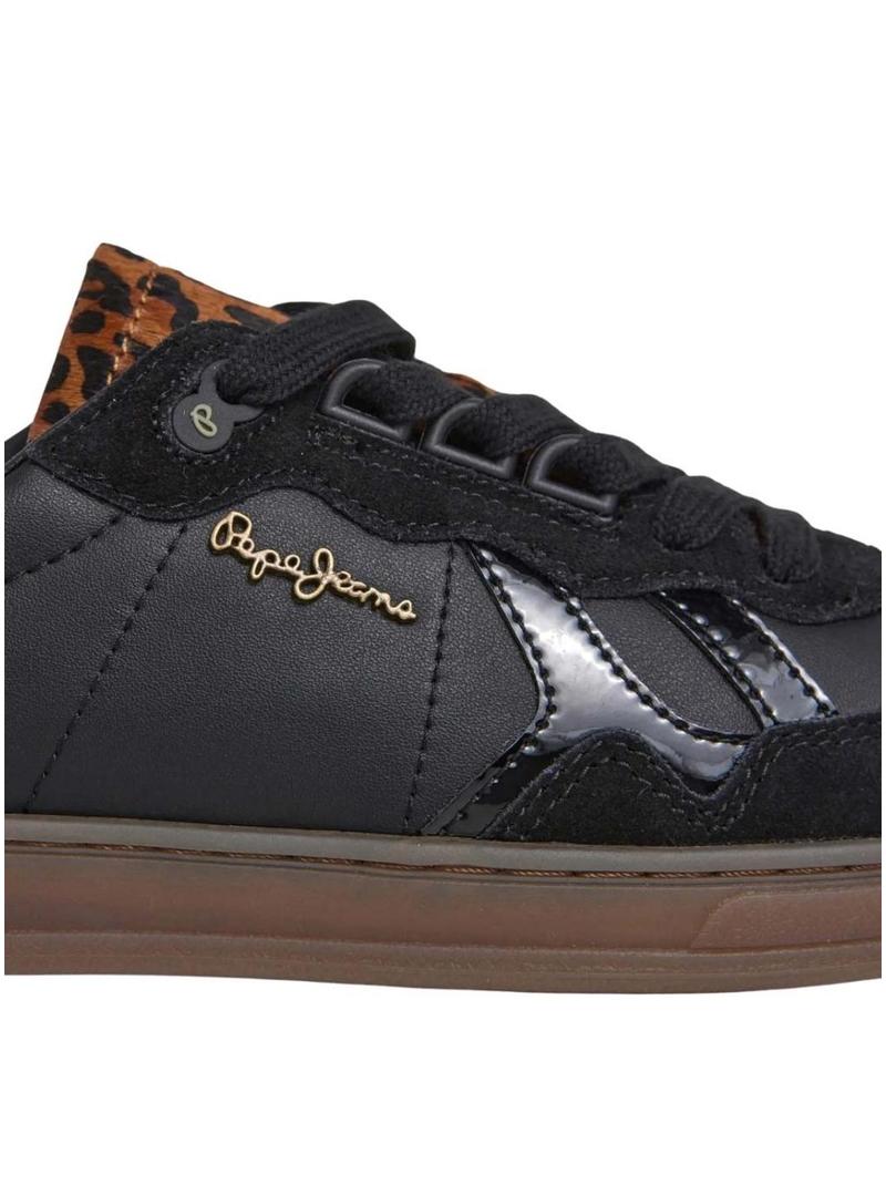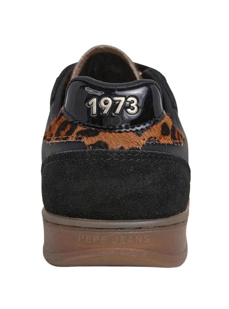 Sapatilhas Pepe Jeans Ball preto com detalhes de leopardo para mulher.