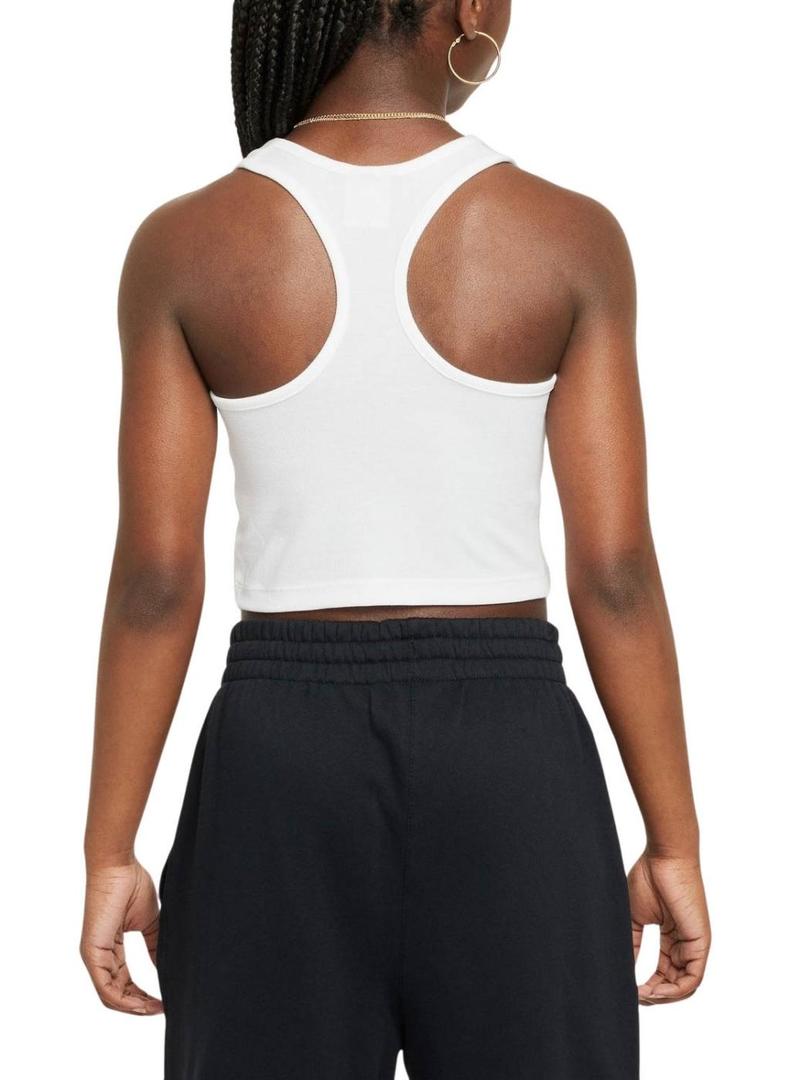 Top Nike. Branco. Para menina. Sem mangas. Gola redonda. Formato curto. Logotipo no peito.