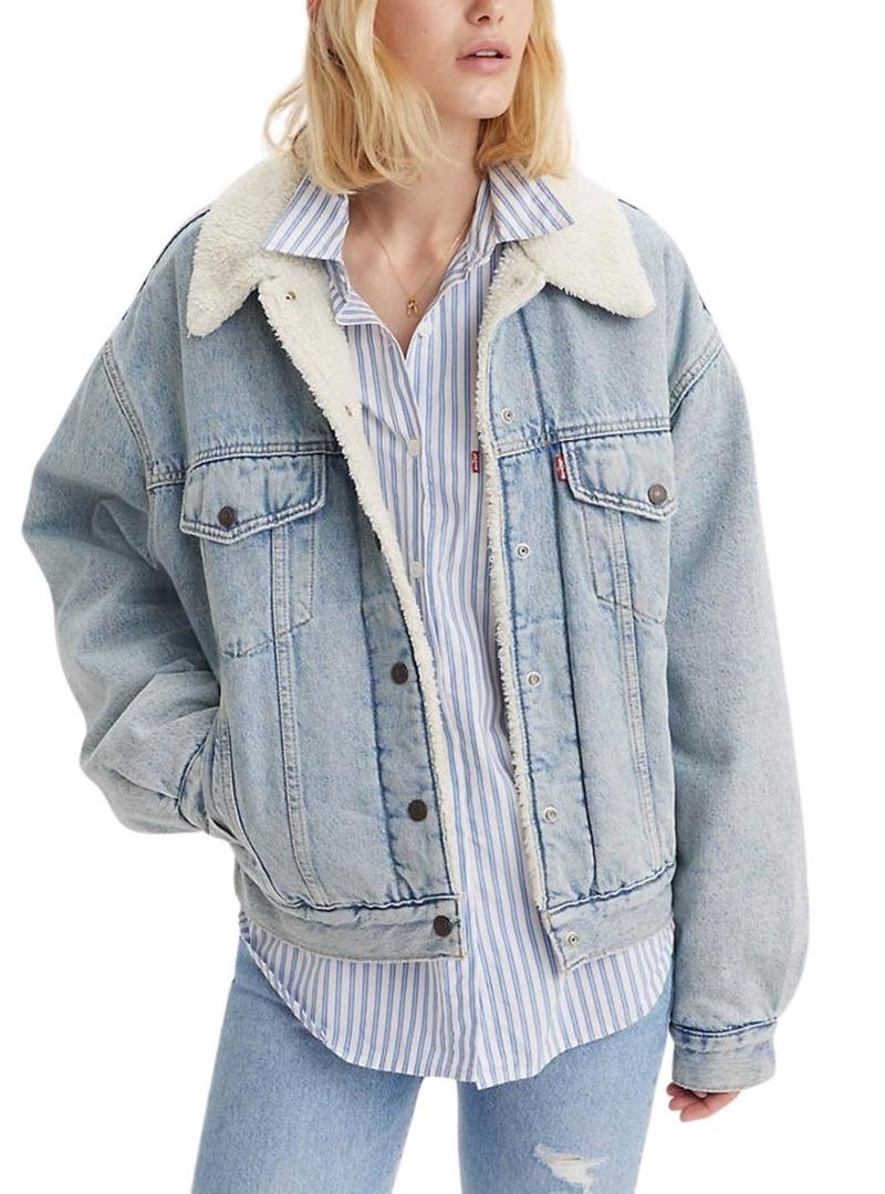 Jaqueta jeans Levis Trucker 90S Sherpa azul para mulher.