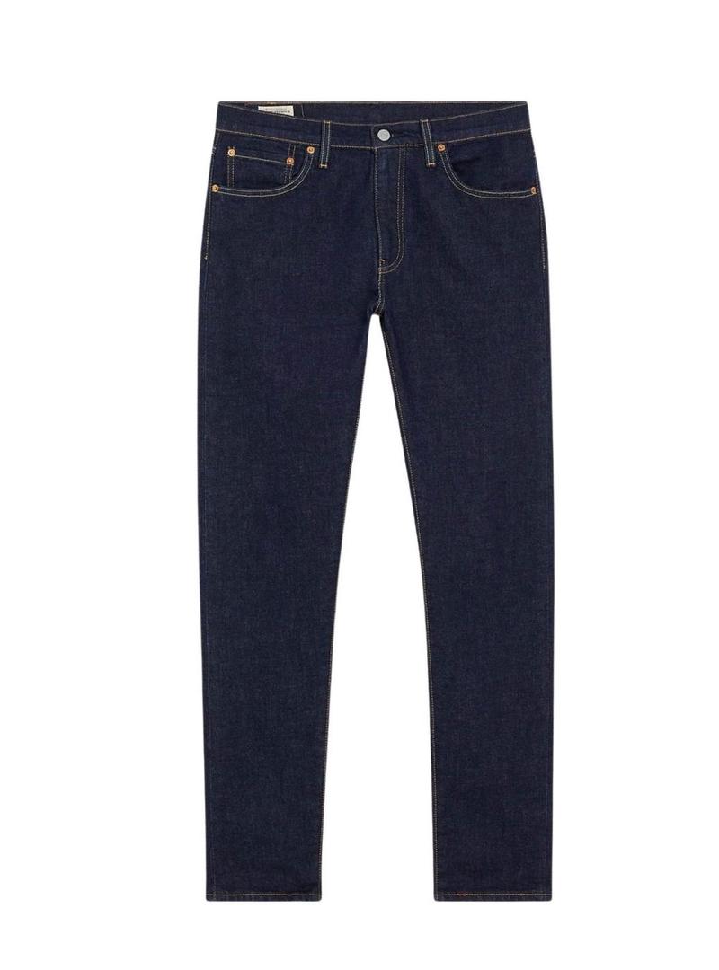 Calça jeans Levis. Modelo 512. Lavagem azul escuro. Assenta abaixo da cintura. Corte padrão na coxa. Cintura média. Tecido denim elástico confortável. Fecho com zíper. 5 bolsos.