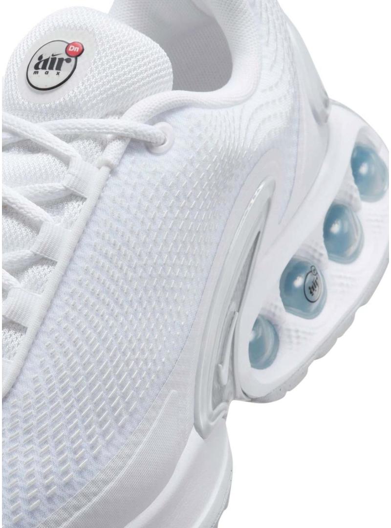 Tênis Nike. Modelo Nike Air Max Dn. Cor branca. Detalhes foscos. Entressola de espuma. Sola de borracha. Sistema de unidades Dynamic Air.