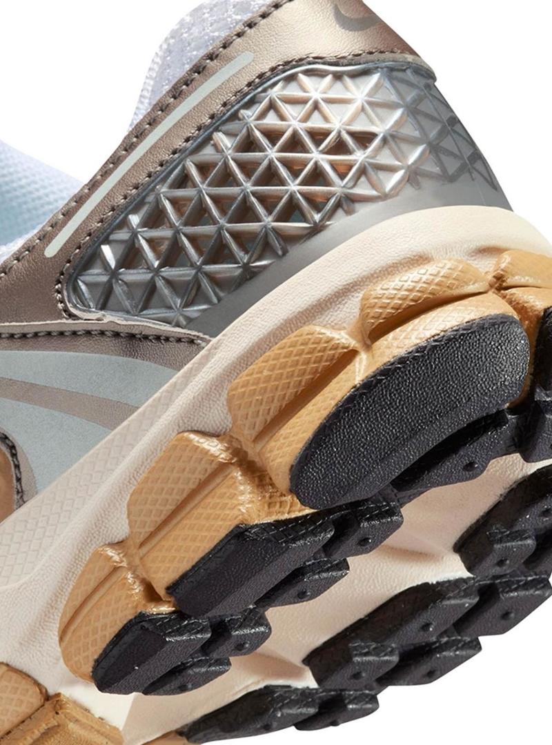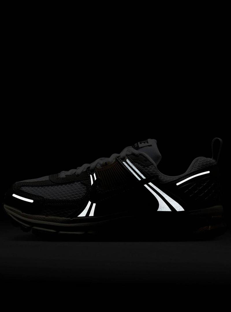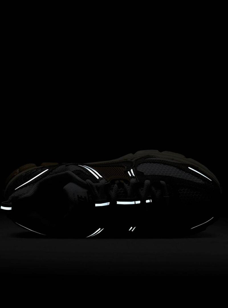 Tênis Nike. Modelo Vomero 5. Parte superior em couro sintético. Painéis de malha. Estrutura de plástico nas laterais. Sola de borracha.